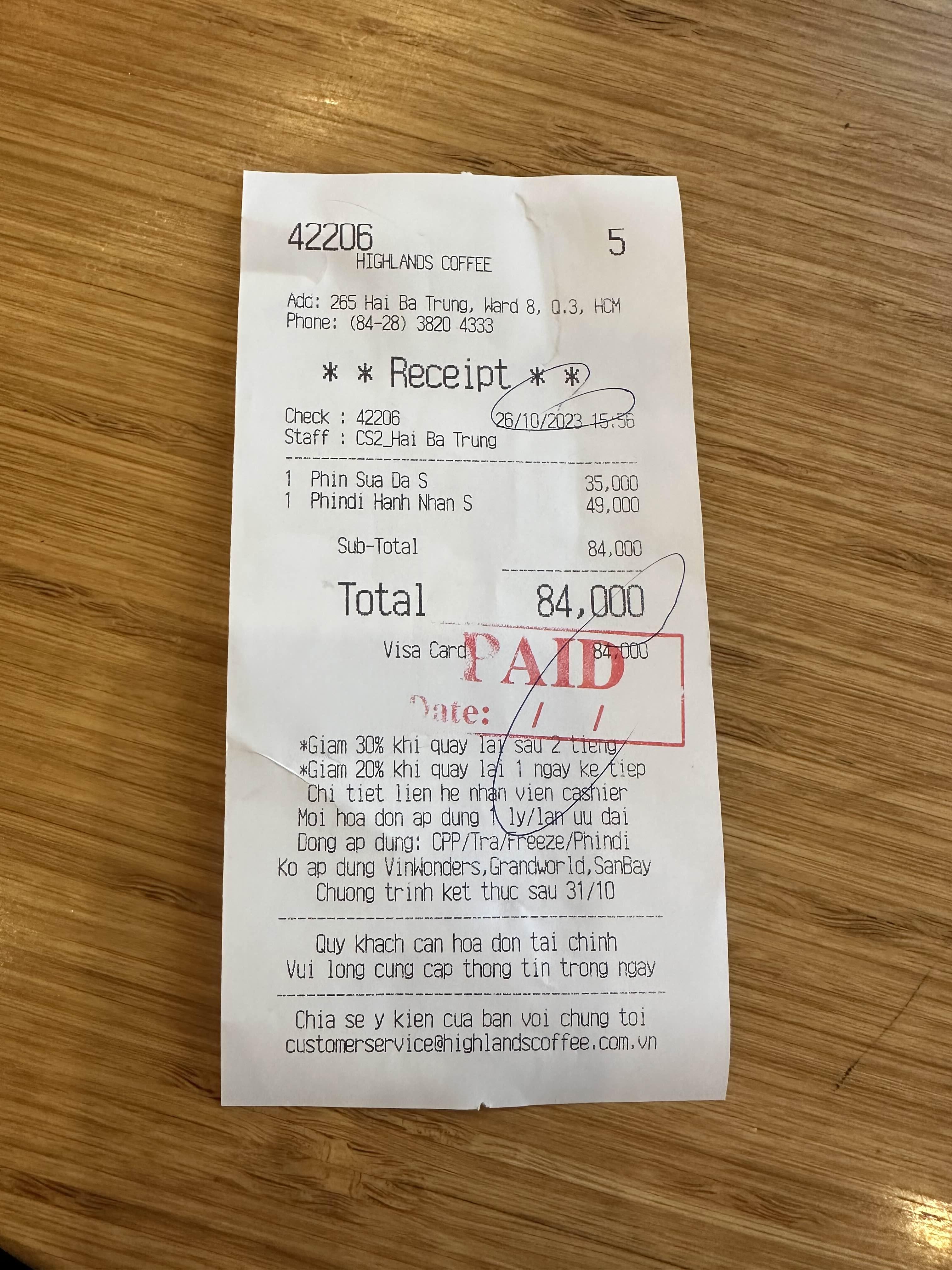 베트남의 제2의 스타벅스 하이랜드커피로 향했습니다.